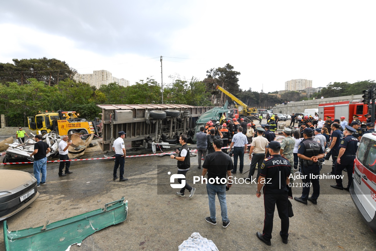 Bakıda yük maşını körpüdən avtomobillərin üstünə aşdı