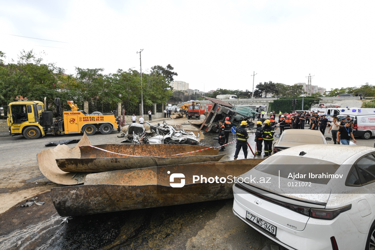Bakıda yük maşını körpüdən avtomobillərin üstünə aşdı