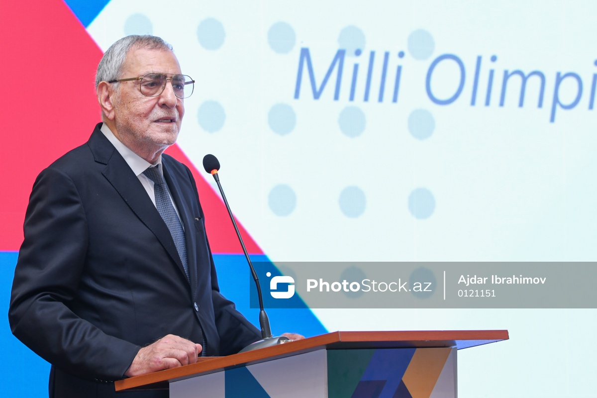 SportAccord Dünya İdman və Biznes Sammiti ilə bağlı müqavilənin imzalanma mərasimində çıxış edən Milli Olimpiya Komitəsinin (MOK) vitse-prezidenti Çingiz Hüseynzadə.