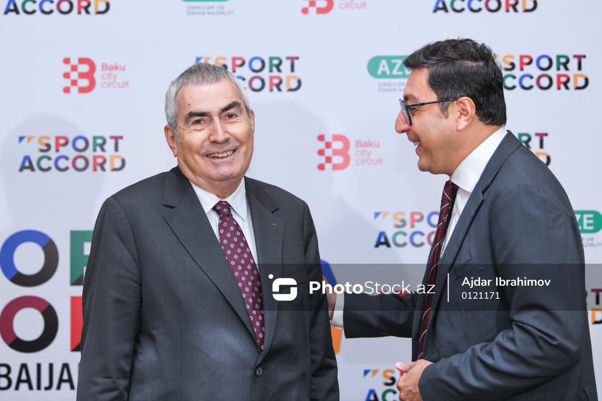 SportAccord Dünya İdman və Biznes Sammiti ilə bağlı müqavilənin imzalanma mərasimində iştirak edən "SportAccord"un prezidenti Uğur Erdener (sol), Gənclər və İdman Naziri Fərid Qayıbov (sağ).
