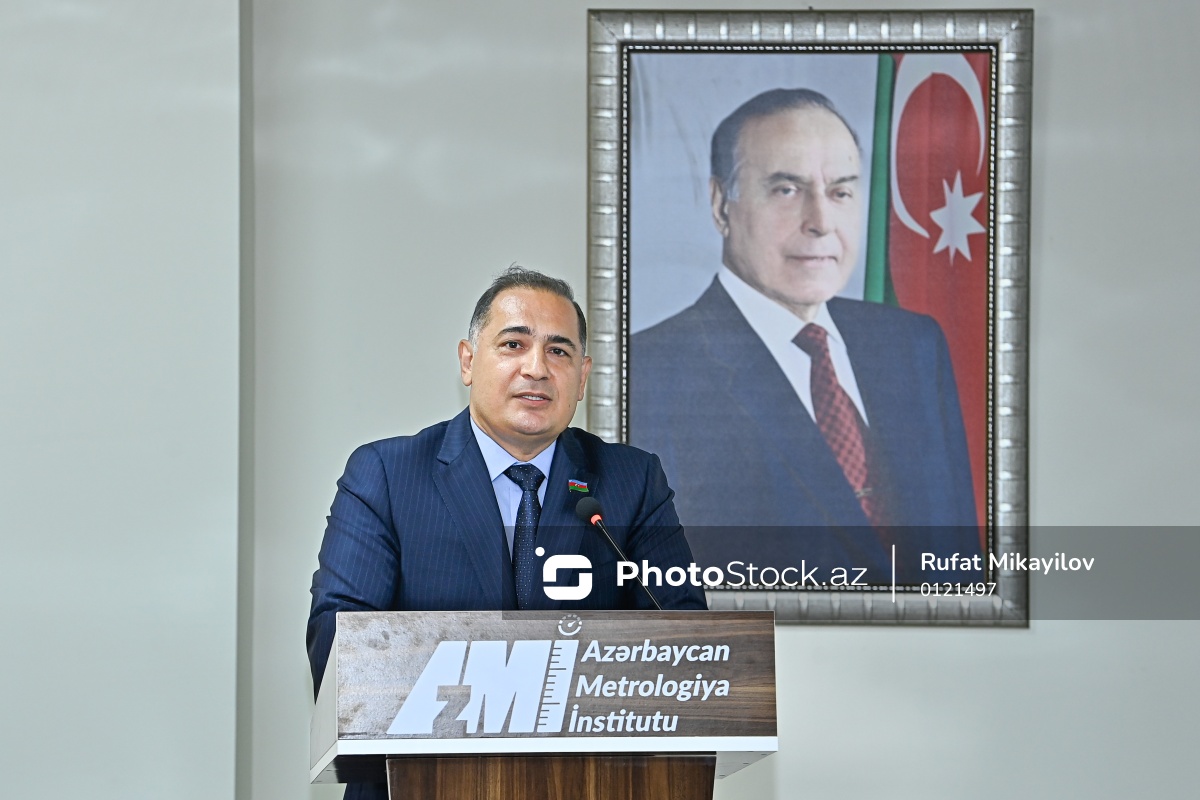Metrologiya İnstitutunun yeni laboratoriyalarının açılış mərasimində çıxış edən Azərbaycan Respublikası Milli Məclisinin İqtisadi siyasət, sənaye və sahibkarlıq komitəsinin sədri, millət vəkili Azər Əmiraslanov.