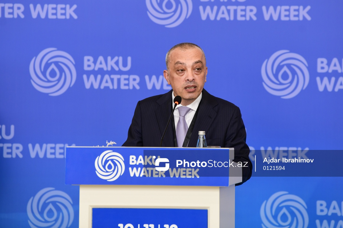 Beynəlxalq Su Təsərrüfatı Sərgi və Konfransı – "Baku Water Week"in açılış mərasimində çıxış edən Azərbaycan Dövlət Su Ehtiyatları Agentliyinin (ADSEA) sədri Zaur Mikayılov.