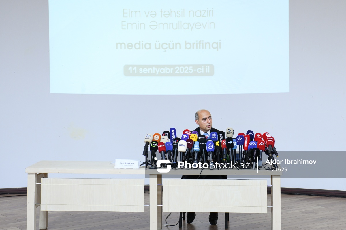 Sentyabrın 11-də elm və təhsil naziri Emin Əmrullayev media üçün brifinq keçirib. O, brifinqdə 2025/2026-cı tədris ilində 2.2 milyon təhsilalanın olacağını, 130 mindən çox uşağın isə birinci sinifə gedəcəyini bildirib. Nazirin açıqladığı son statistikaya əsasən, lisey və gimnaziyalara qəbul 2 dəfə artıb, gimnaziyaların sayının 100-ə çatdırılması planlaşdırılır. Emin Əmrullayev 600-ə yaxın məktəbin yenidən qurulduğunu, qəzalı məktəb sayının isə 400-ə endiyini vurğulayıb. Brifinqdə Bakı məktəblərində jurnalların ləğv olunduğu, “Rəqəmsal məktəb” platformasının fəaliyyətə başladığı qeyd olunub. Ali və peşə təhsilinə qəbulun artdığını bildirən nazir Azərbaycanın “QS 2026” reytinqində Cənubi Qafqaz regionu üzrə lider olduğunu bildirib.