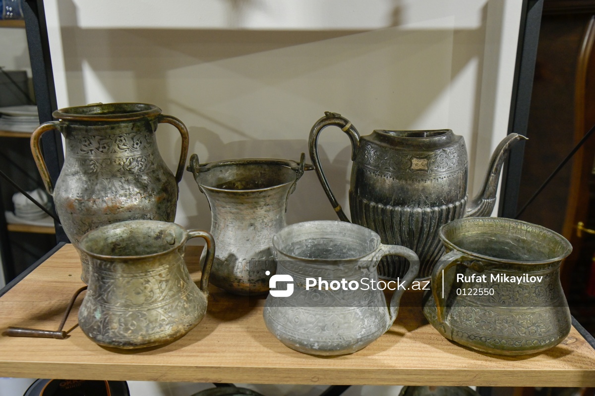 Qədim əşyaların yer aldığı mağazada XVIII–XIX əsrə aid nadir incəsənət nümunələri görmək mümkündür. Mağazadakı əşyaların bir qismi, xüsusilə  xalçalar və qədim samovarlar Azərbaycana məxsus olsa da, Fransa, İtaliya və Rusiya kimi ölkələrdən də gətirilmiş xeyli sayda unikal nümunələr yer alır. Bunların arasında olan samovarlar, zərif işləməli qab-qacaqlar, klassik üslublu mebellər, əl toxuması xalçalar, qədim sobalar, dəbdəbəli saat və şamdanlar keçmiş dövrlərin izlərini daşıyır. Gümüş, bürünc və qızıl suyundan hazırlanmış əntiq əşyalar təkcə zəngin görünüşü ilə deyil, həm də zərif sənətkarlıq işi ilə seçilir.
