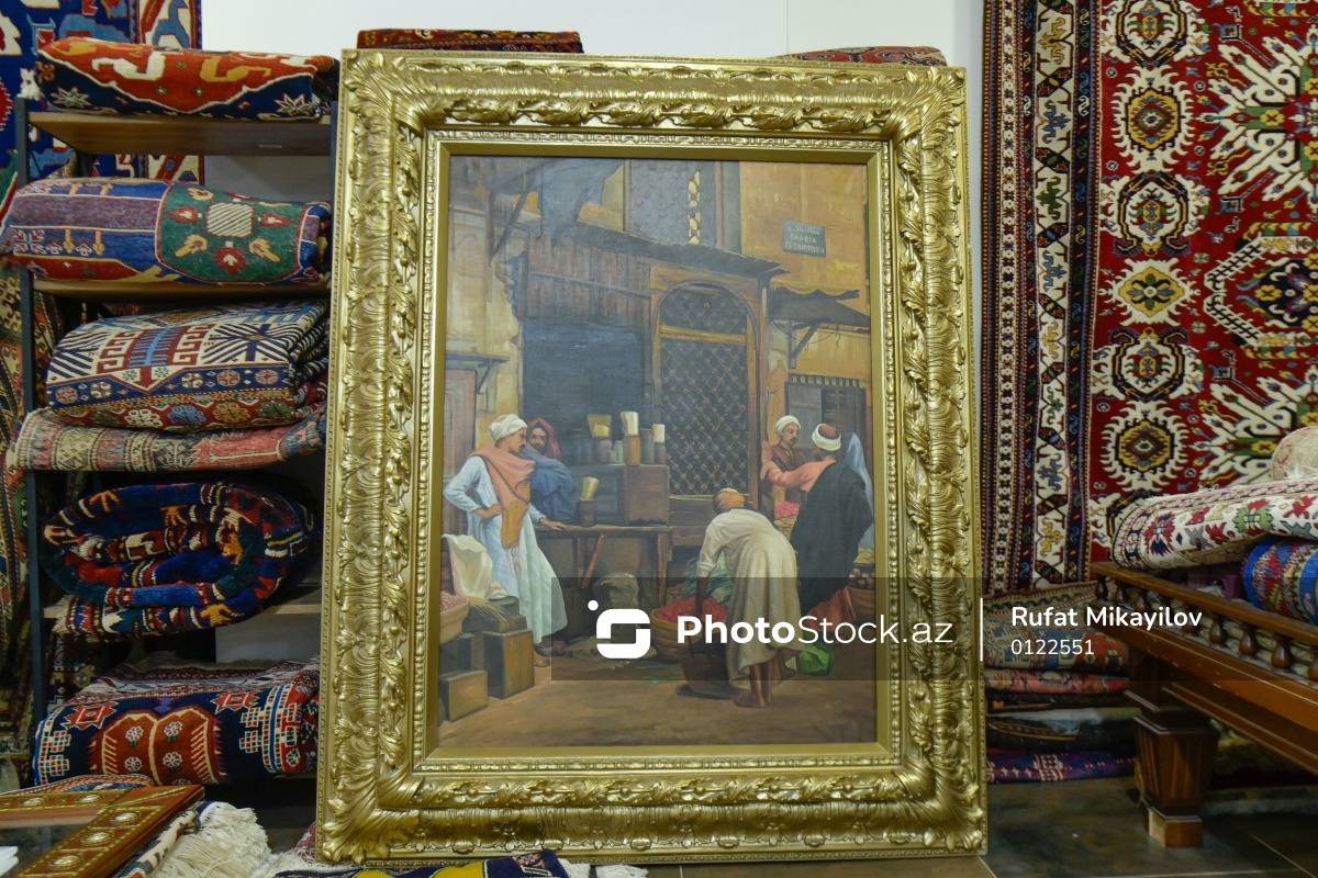 Qədim əşyaların yer aldığı mağazada XVIII–XIX əsrə aid nadir incəsənət nümunələri görmək mümkündür. Mağazadakı əşyaların bir qismi, xüsusilə  xalçalar və qədim samovarlar Azərbaycana məxsus olsa da, Fransa, İtaliya və Rusiya kimi ölkələrdən də gətirilmiş xeyli sayda unikal nümunələr yer alır. Bunların arasında olan samovarlar, zərif işləməli qab-qacaqlar, klassik üslublu mebellər, əl toxuması xalçalar, qədim sobalar, dəbdəbəli saat və şamdanlar keçmiş dövrlərin izlərini daşıyır. Gümüş, bürünc və qızıl suyundan hazırlanmış əntiq əşyalar təkcə zəngin görünüşü ilə deyil, həm də zərif sənətkarlıq işi ilə seçilir.