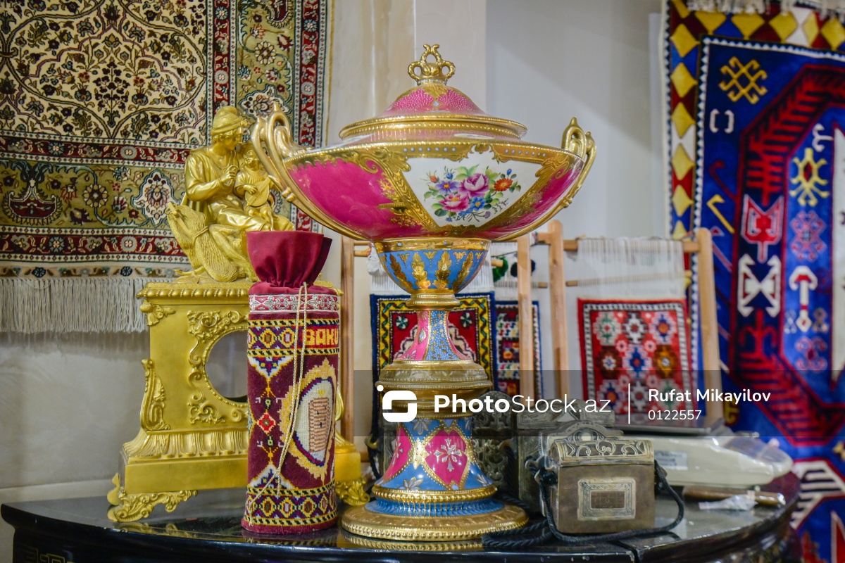 Qədim əşyaların yer aldığı mağazada XVIII–XIX əsrə aid nadir incəsənət nümunələri görmək mümkündür. Mağazadakı əşyaların bir qismi, xüsusilə  xalçalar və qədim samovarlar Azərbaycana məxsus olsa da, Fransa, İtaliya və Rusiya kimi ölkələrdən də gətirilmiş xeyli sayda unikal nümunələr yer alır. Bunların arasında olan samovarlar, zərif işləməli qab-qacaqlar, klassik üslublu mebellər, əl toxuması xalçalar, qədim sobalar, dəbdəbəli saat və şamdanlar keçmiş dövrlərin izlərini daşıyır. Gümüş, bürünc və qızıl suyundan hazırlanmış əntiq əşyalar təkcə zəngin görünüşü ilə deyil, həm də zərif sənətkarlıq işi ilə seçilir.