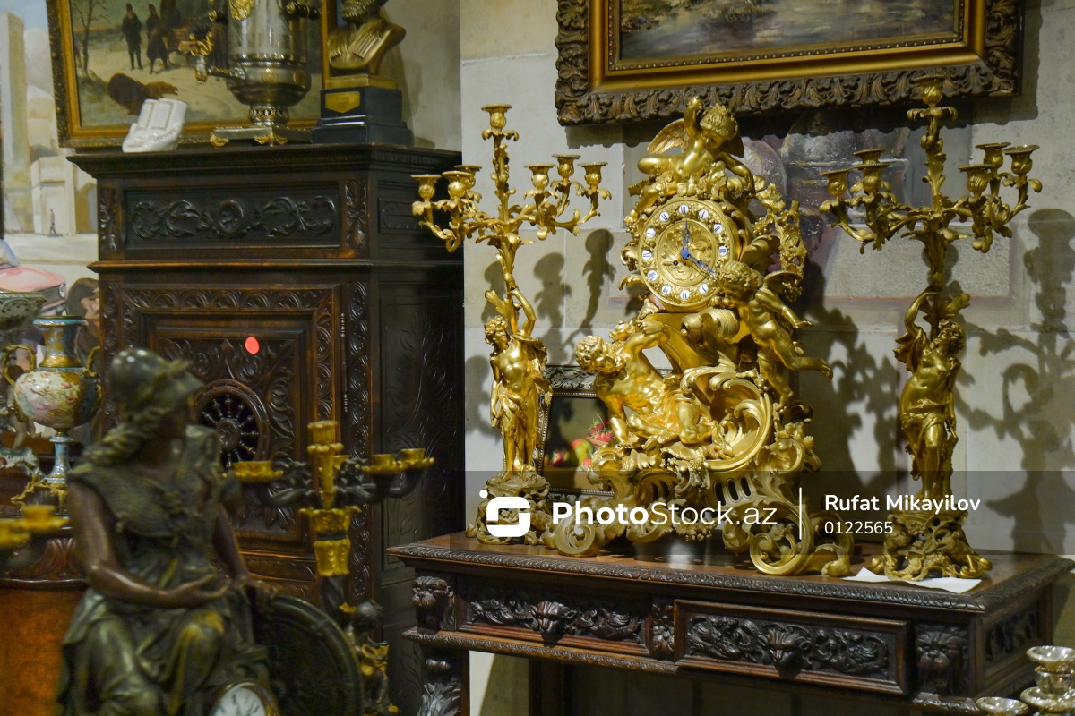 Qədim əşyaların yer aldığı mağazada XVIII–XIX əsrə aid nadir incəsənət nümunələri görmək mümkündür. Mağazadakı əşyaların bir qismi, xüsusilə  xalçalar və qədim samovarlar Azərbaycana məxsus olsa da, Fransa, İtaliya və Rusiya kimi ölkələrdən də gətirilmiş xeyli sayda unikal nümunələr yer alır. Bunların arasında olan samovarlar, zərif işləməli qab-qacaqlar, klassik üslublu mebellər, əl toxuması xalçalar, qədim sobalar, dəbdəbəli saat və şamdanlar keçmiş dövrlərin izlərini daşıyır. Gümüş, bürünc və qızıl suyundan hazırlanmış əntiq əşyalar təkcə zəngin görünüşü ilə deyil, həm də zərif sənətkarlıq işi ilə seçilir.