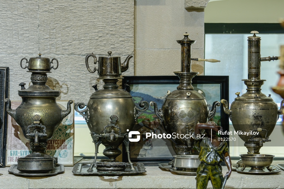 Qədim əşyaların yer aldığı mağazada XVIII–XIX əsrə aid nadir incəsənət nümunələri görmək mümkündür. Mağazadakı əşyaların bir qismi, xüsusilə  xalçalar və qədim samovarlar Azərbaycana məxsus olsa da, Fransa, İtaliya və Rusiya kimi ölkələrdən də gətirilmiş xeyli sayda unikal nümunələr yer alır. Bunların arasında olan samovarlar, zərif işləməli qab-qacaqlar, klassik üslublu mebellər, əl toxuması xalçalar, qədim sobalar, dəbdəbəli saat və şamdanlar keçmiş dövrlərin izlərini daşıyır. Gümüş, bürünc və qızıl suyundan hazırlanmış əntiq əşyalar təkcə zəngin görünüşü ilə deyil, həm də zərif sənətkarlıq işi ilə seçilir.