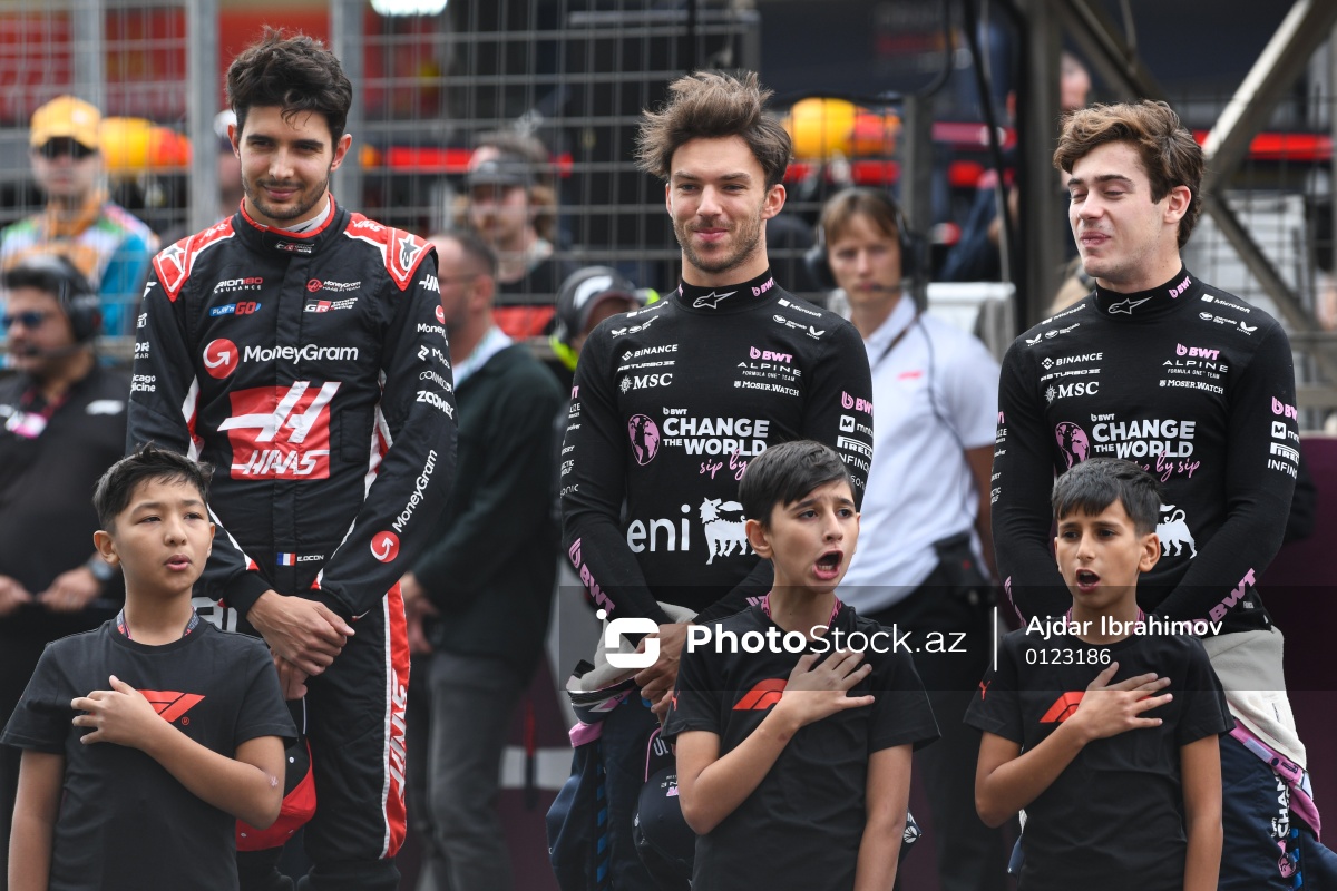 2025-ci ildə Bakıda keçirilən "Formula 1" üzrə Azərbaycan Qran-prisində iştirak edən (soldan-sağa) "Haas" komandasının pilotu Esteban Ocon, "Alpine" komandasının pilotları Pierre Gasly və Franco Colapinto.