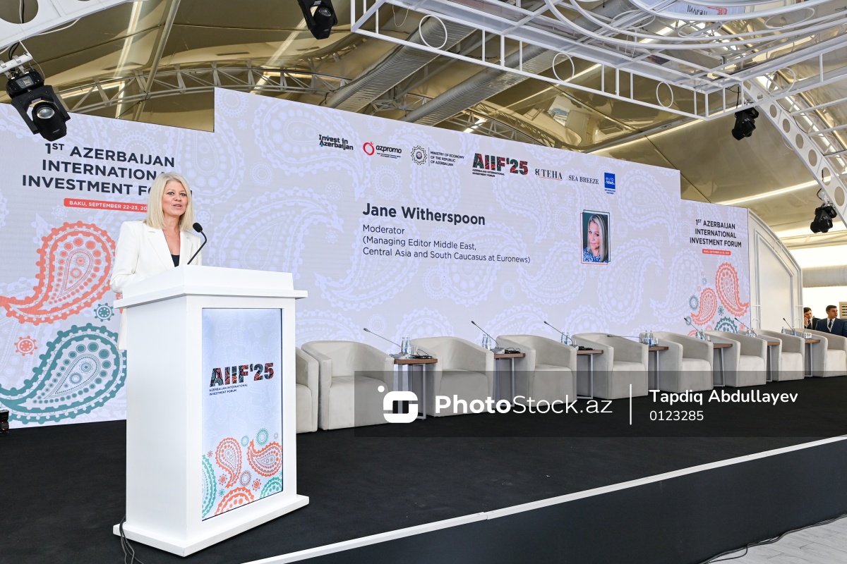 I Azərbaycan Beynəlxalq İnvestisiya Forumunda (AIIF 2025) iştirak edən "Euronews"un Yaxın Şərq, Mərkəzi Asiya və Cənubi Qafqaz üzrə idarəedici redaktoru Jane Witherspoon.