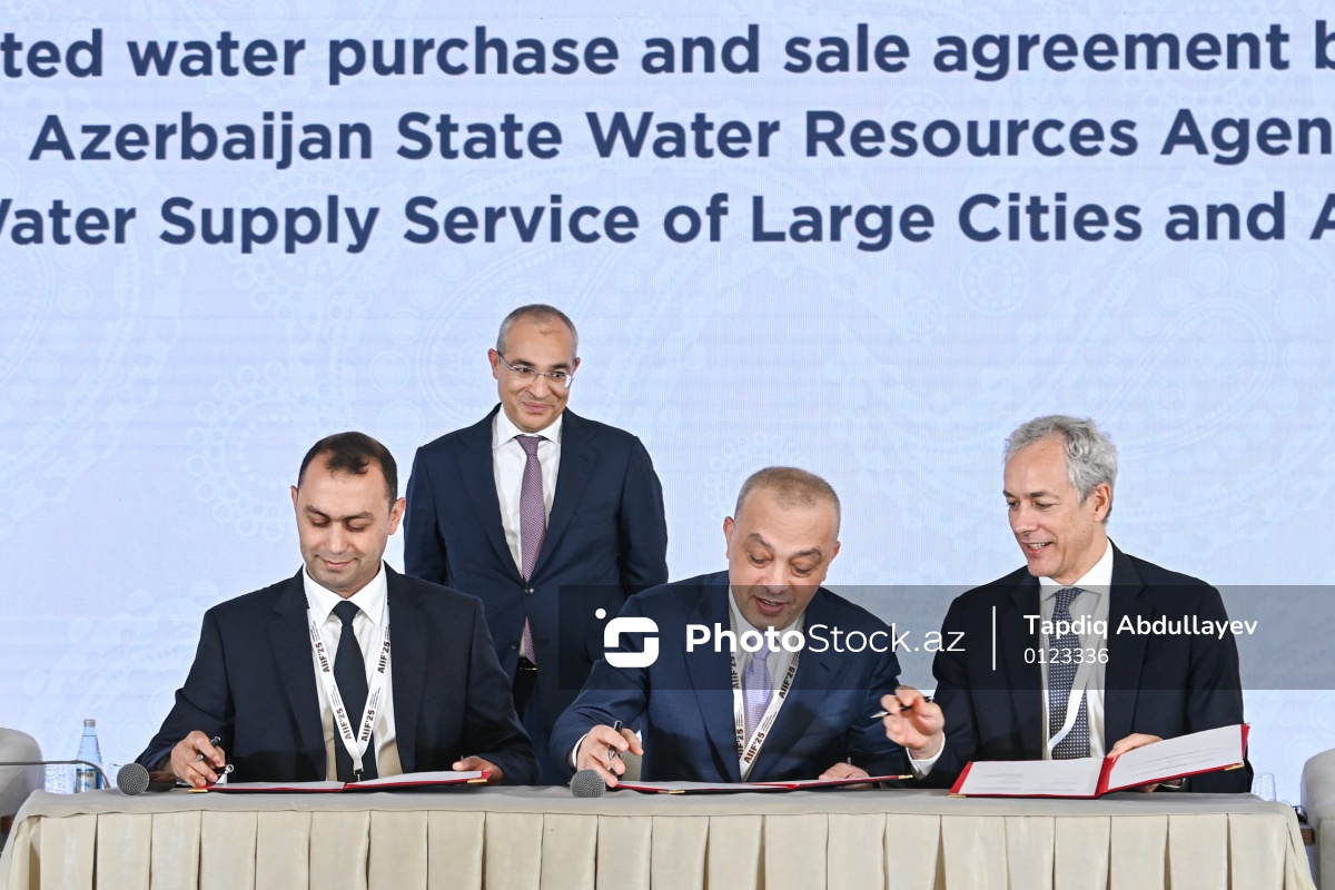 I Azərbaycan Beynəlxalq İnvestisiya Forumu (AIIF 2025) çərçivəsində emal olunmuş suyun alınması haqqında saziş imzalanıb. Sazişə ADSEA sədri Zaur Mikayılov, "Böyük Şəhərlərin Birləşmiş Su Təchizatı Xidməti" publik hüquqi şəxsin İdarə Heyətinin sədri Tahir Xəlilov və "ACWA Power" şirkətinin baş icraçı direktoru Marko Arçelli (Marco Arcelli) imza atıblar.