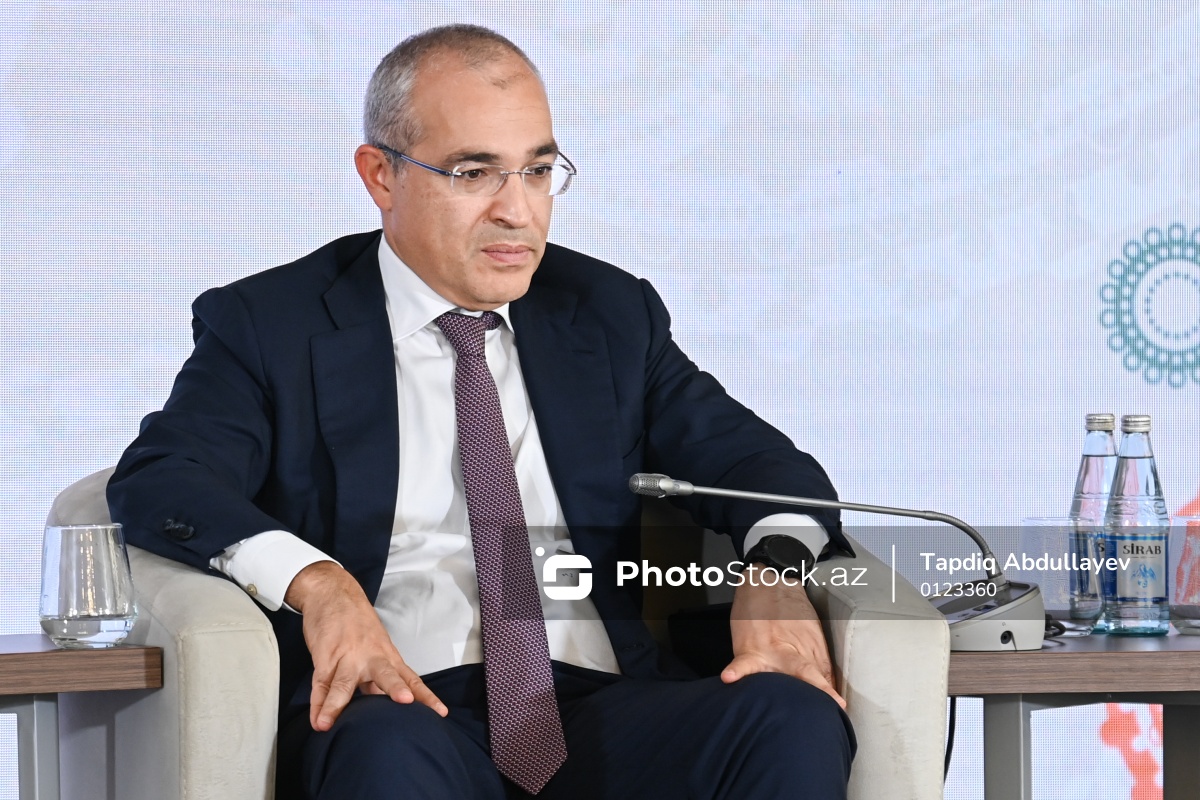 I Azərbaycan Beynəlxalq İnvestisiya Forumunda (AIIF 2025) iştirak edən Azərbaycan Respublikasının iqtisadiyyat naziri Mikayıl Cabbarov.