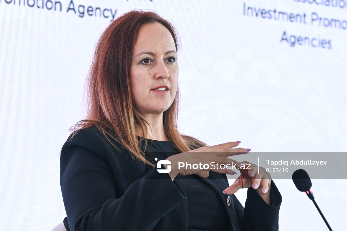 I Azərbaycan Beynəlxalq İnvestisiya Forumunda (AIIF 2025) iştirak edən Macarsıtan Xarici İqtisadi Əlaqələr üzrə Dövlət Katibinin müavini və Macarıstan İxracın Təşviqi Agentliyinin İcraçı direktoru Katalin Bihari.