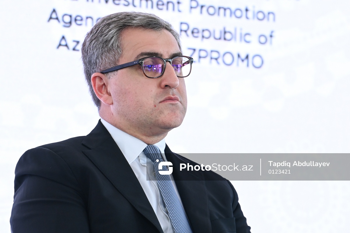 I Azərbaycan Beynəlxalq İnvestisiya Forumunda (AIIF 2025) iştirak edən İxracın və İnvestisiyaların Təşviqi Agentliyinin (AZPROMO) icraçı direktoru Yusif Abdullayev.