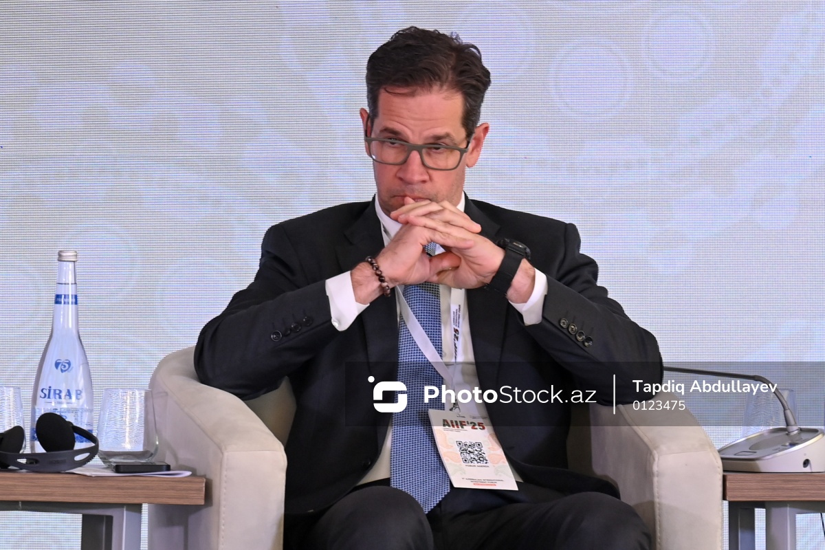 Sentyabrın 23-də Bakıda keçirilən I Azərbaycan Beynəlxalq İnvestisiya Forumunun (AIIF 2025) ikinci günündə iştirak edən Macarıstandakı Türk Dövlətləri Təşkilatı Nümayəndəliyinin Missiya Rəhbəri Balazs Hendrich.