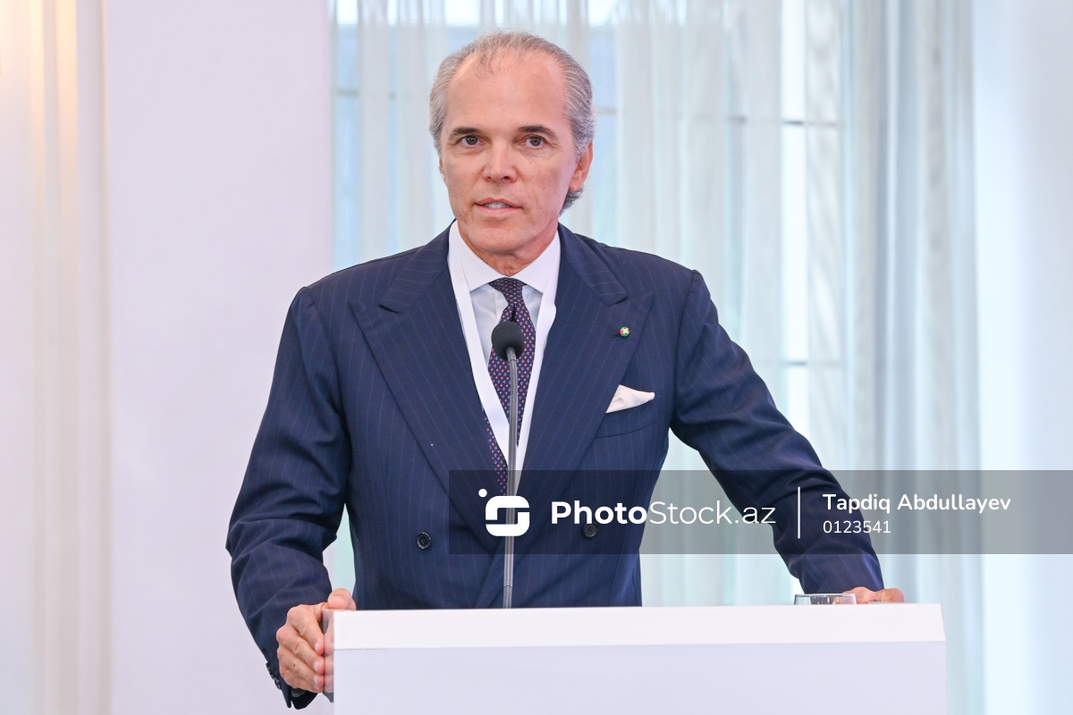 I Azərbaycan Beynəlxalq İnvestisiya Forumunun (AIIF 2025) ikinci günündə çıxış edən "Italiana Petroli S.p.A"nın İdarə Heyətinin sədri Uqo Braçetti Peretti (Ugo Brachetti Peretti).