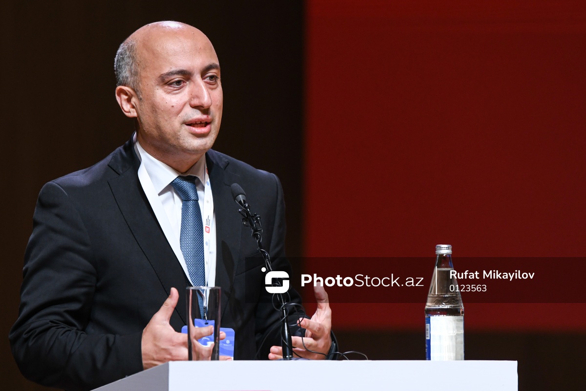 “THE Avrasiya Universitetlərinin Sammiti”ndə çıxış edən Azərbaycan Respublikasının Elm və Təhsil naziri Emin Əmrullayev.