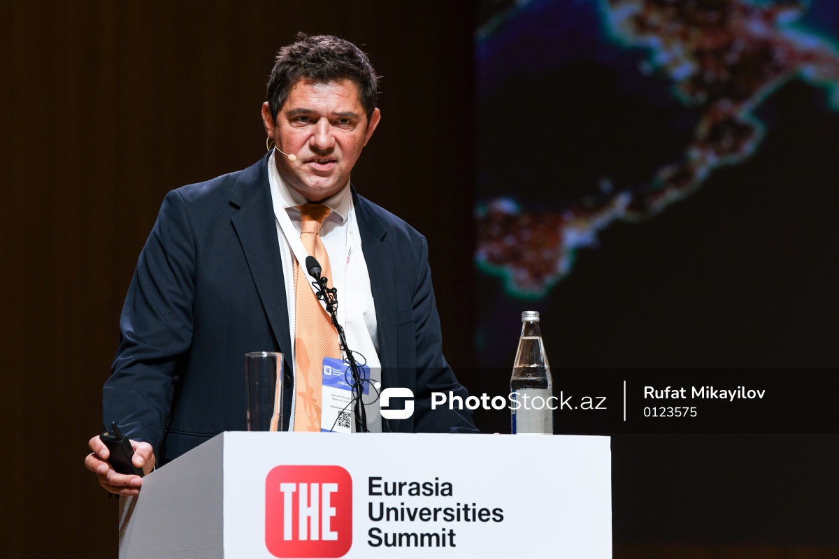 “THE Avrasiya Universitetlərinin Sammiti”ndə çıxış edən Con fon Neyman Universitetinin Müşahidə Şurasının sədri Norbert Csizmadia.