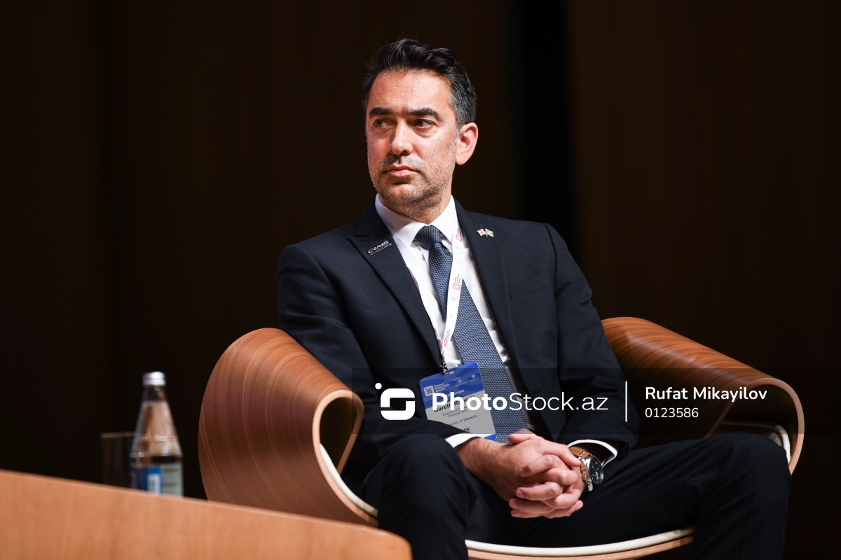 “THE Avrasiya Universitetlərinin Sammiti”ndə iştirak edən Uorik Universitetinin strateji inkişaf direktoru Qaret Roberts.