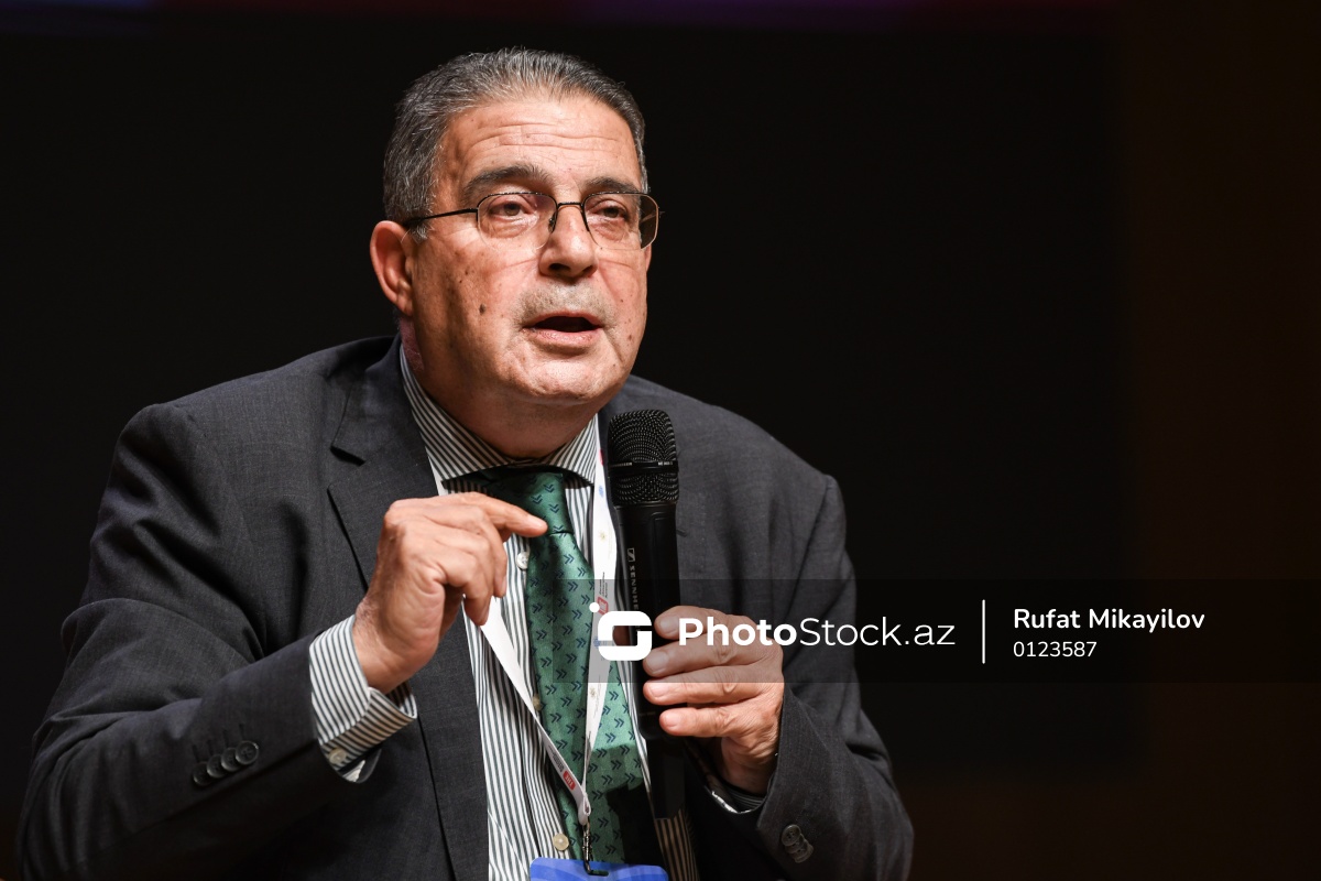 “THE Avrasiya Universitetlərinin Sammiti”ndə çıxış edən Əbu-Dabi Universitetinin rektoru Qassan Aouad.
