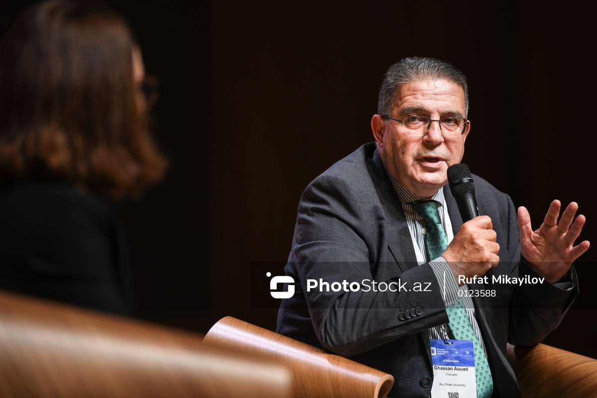 “THE Avrasiya Universitetlərinin Sammiti”ndə çıxış edən Əbu-Dabi Universitetinin rektoru Qassan Aouad.
