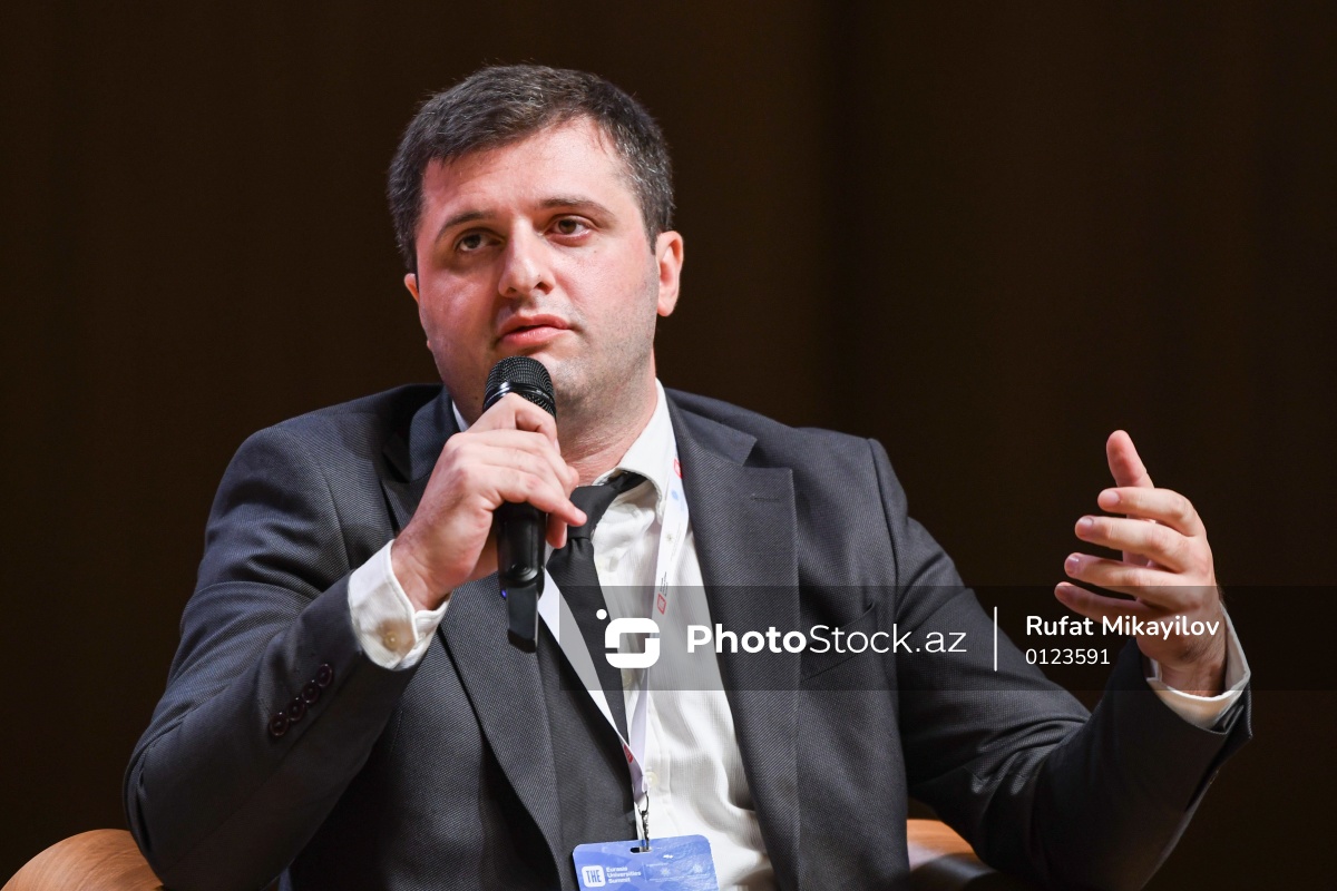 “THE Avrasiya Universitetlərinin Sammiti”ndə çıxış edən Tbilisi Dövlət Universitetinin keyfiyyət təminatı ofisinin rəhbəri Şota Potolaşvili.
