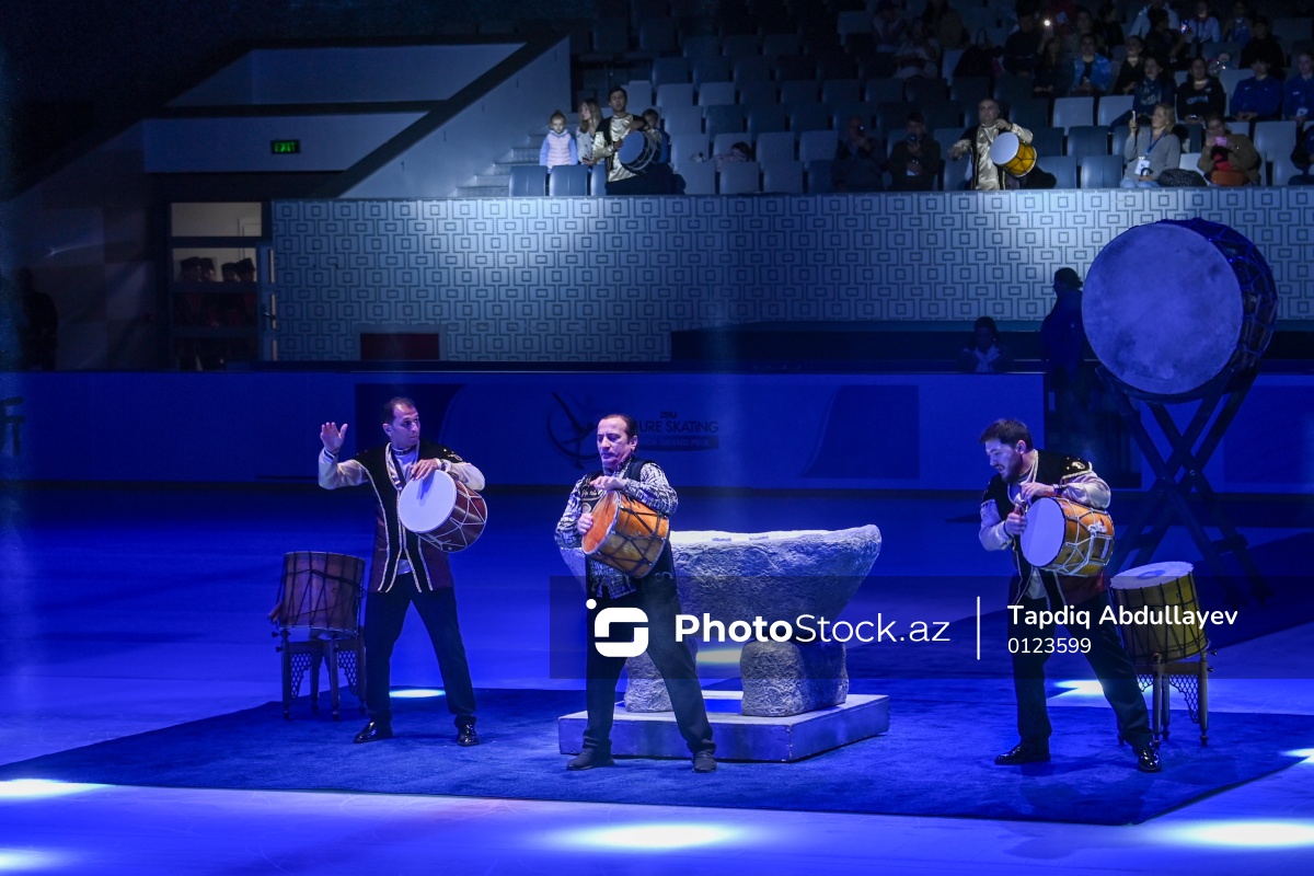 Yeniyetmələr arasında fiqurlu konkisürmə üzrə Qran-pri turnirinin açılış mərasimində çıxış edən "Natiq" ritm qrupu.