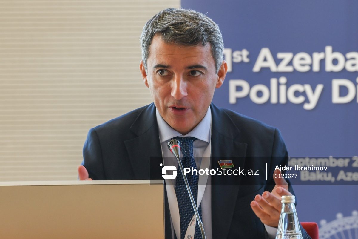 I Azərbaycan-Birləşmiş Krallıq Siyasət Dialoqunda çıxış edən ADA Universitetinin prorektoru, millət vəkili Fariz İsmayılzadə.