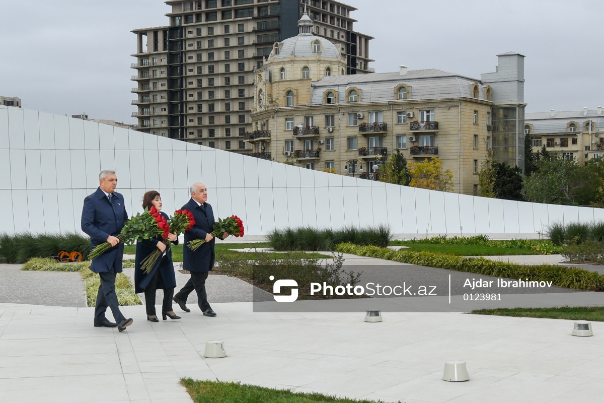 27 Sentyabr - Anım Günü ilə əlaqədar Zəfər parkını ziyarət edən (soldan-sağa) Prezident Administrasiyasının rəhbəri Samir Nuriyev, Milli Məclisin sədri Sahibə Qafarova və Azərbaycanın Baş naziri Əli Əsədov.