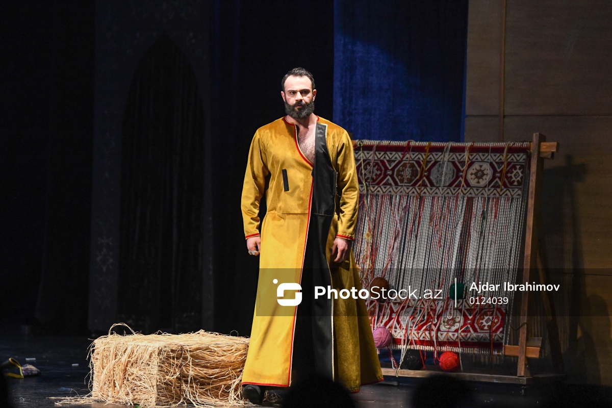Azərbaycan Dövlət Akademik Milli Dram Teatrında "Baş" tamaşasının premyerasında Abbas Mirzə rolunu ifa edən Tural İbrahimov.