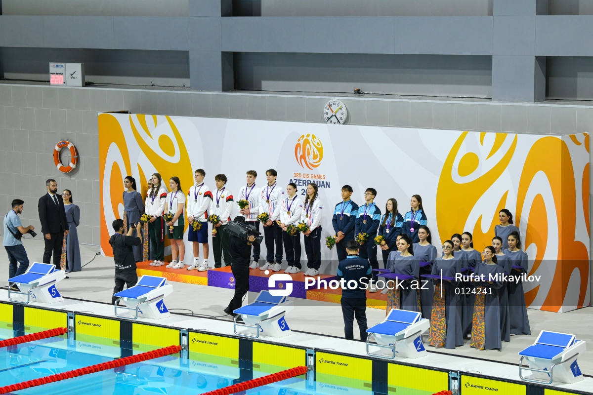 Sentyabrın 28-də III MDB Oyunları çərçivəsində Gəncə İdman Sarayında üzgüçülük üzrə final görüşləri keçirilib. İlk olaraq qadınların yarışında 800 metr məsafəyə sərbəst üsulla üzmədə mükafatçılar müəyyənləşib. Rusiya təmsilçisi Anastasia Çernişova birinci, onun həmyerlisi Valeria Brazniçenko ikinci, Belarusdan olan Kseniya Mastoviç üçüncü yeri tutub. Azərbaycan üzgüçüsü Anastasiya Qnussina dördüncü yerlə kifayətlənib. Qadınların 100 metr məsafəyə "butterfly" üsulu üzrə üzməsində rusiyalı Yevgenia Sadovnikova qızıl, qazaxıstanlı Taissiya Korotkova gümüş, Azərbaycan təmsilçisi Mehri Əbdürəhmanlı bürünc medal əldə edib. Kişilərin mübarizəsində 50 metr məsafəyə arxasıüstə üzmə yarışında da qaliblər bəlli olub. Rusiyalı Dmitrii Kravtsov birinci, Belarusdan olan Mikita Apanasik və Kiril Bantşeviç müvafiq olaraq 2 və 3-cü yerləri tutublar. 200 metr məsafəyə dörd üslübdan ibarət fərdi üzgüçülük yarışında Rusiyalı İlya Lamşanov qızıl, belaruslu Maksim Maluşka gümüş mükafat əldə edib. Azərbaycan üzgüçüsü Yeqor Maynitski isə bürünc medal qazanıb. Bundan başqa, qadınların 200 metr məsafəyə bras üslubu üzrə yarışında Rusiya idmançısı Marya Lakovleva qızıl medal əldə edib. Belarusdan olan Valeriya Şulko ikinci, onun həmyerlisi Bajena Pivaş üçüncü olublar. Kişilər arasında 100 metr məsafəyə bras üslubu ilə üzmədə Belarus üzgüçüsü Vsevolod Sarakavik bütün rəqiblərini qabaqlayıb. Rusiyalı İlya Lamşanov ikinci, onun həmyerlisi Kiril Veremçuk üçüncü yeri tutub. Azərbaycan üzgüçüsü Süleyman İsmayılzadə 1500 metr məsafəyə sərbəst üsulla üzmə yarışında ikinci olub gümüş medal qazanıb. Rusiyalı Aleksandr Filipets qızıl medal əldə edibsə, onun həmyerlisi Boqdan Toropkin üçüncü yerlə kifayətlənib. Qadınlar arasında arxasıüstə 200 metr məsafəyə üzmə yarışında rusiyalı Anastasia Kobzar birinci, qazaxıstanlı Marqarita Zaytseva və onun həmyerlisi Marqarita Rayenka növbəti pillələrdə qərarlaşıblar.