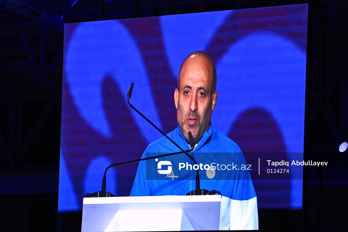 III MDB Oyunlarının açılış mərasimində çıxış edən sərbəst güləş üzrə yığmanın baş məşqçisi Əsgərxan Novruzov.