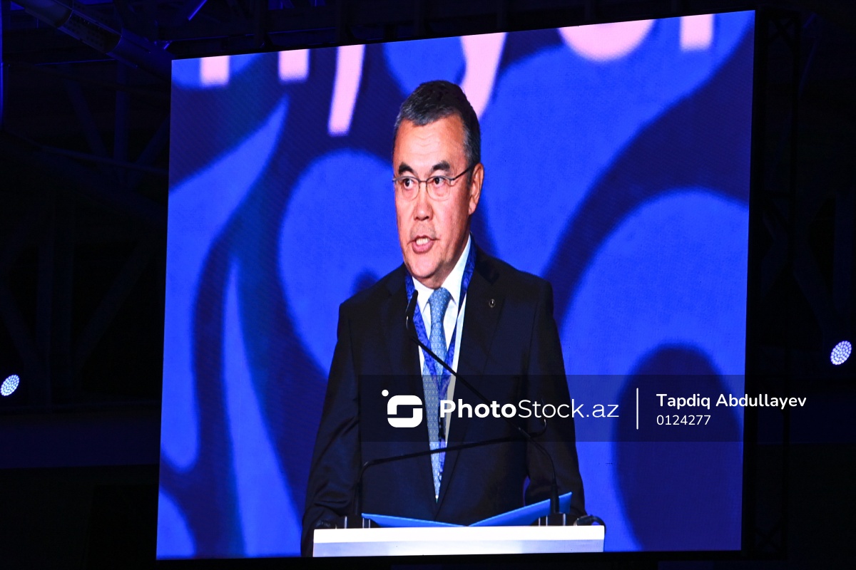 III MDB Oyunlarının açılış mərasimində çıxış edən Müstəqil Dövlətlər Birliyinin Baş katibinin müavini Nurlan Seytimov.