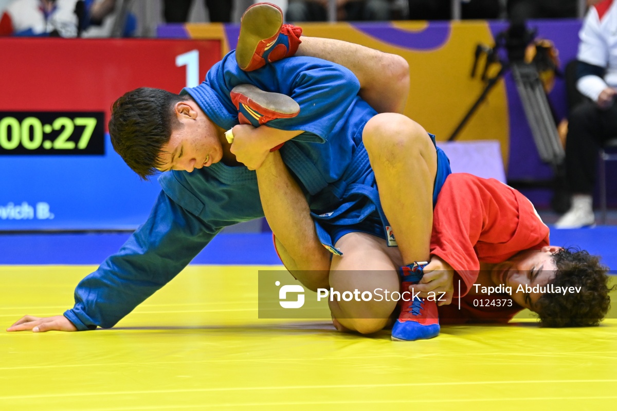 Sentyabrın 29-da Göygöl Olimpiya Kompleksində III MDB Oyunları çərçivəsində sambo üzrə yarışlar keçirilib. 1/4 final mərhələsində 79 kq çəki dərəcəsində yarışan qırğızıstanlı Maral Serikovich Baibosunov (sol) Azərbaycan samboçusu Sadiq Nadirovu (sağ) 2:1 hesabı ilə məğlub edib.