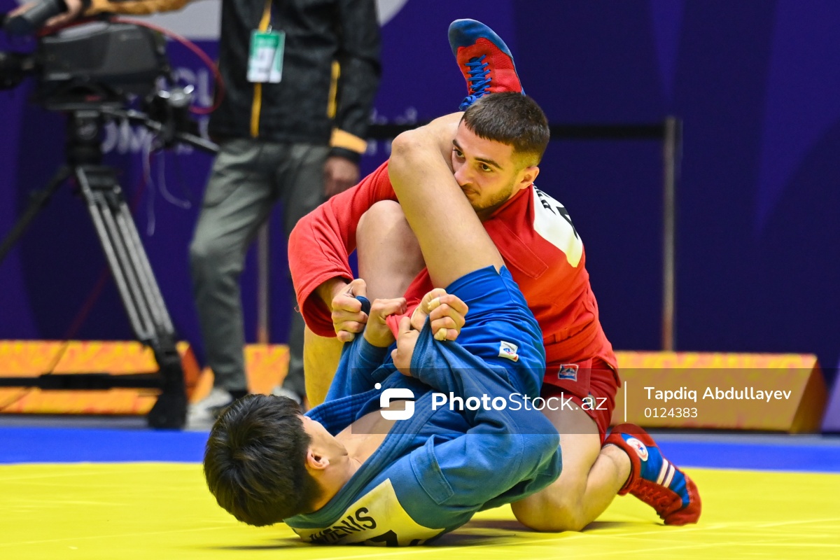 Sentyabrın 29-da Göygöl Olimpiya Kompleksində III MDB Oyunları çərçivəsində sambo üzrə yarışlar keçirilib. 1/4 final mərhələsində 71 kq çəki dərəcəsində yarışan qazaxıstanlı idmançı Yerassyl Zhengis (sol) Azərbaycan samboçusu Mikayıl Əmirova (sağ) 0:1 hesabı ilə məğlub olub.