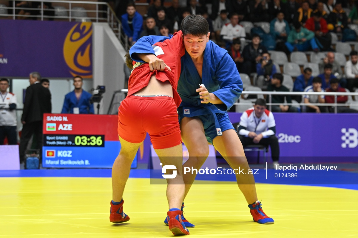 Sentyabrın 29-da Göygöl Olimpiya Kompleksində III MDB Oyunları çərçivəsində sambo üzrə yarışlar keçirilib. 1/4 final mərhələsində 79 kq çəki dərəcəsində yarışan Azərbaycan samboçusu Sadiq Nadirov (sol) qırğızıstanlı Maral Serikovich Baibosunova (sağ) 1:2 hesabı ilə məğlub olub.