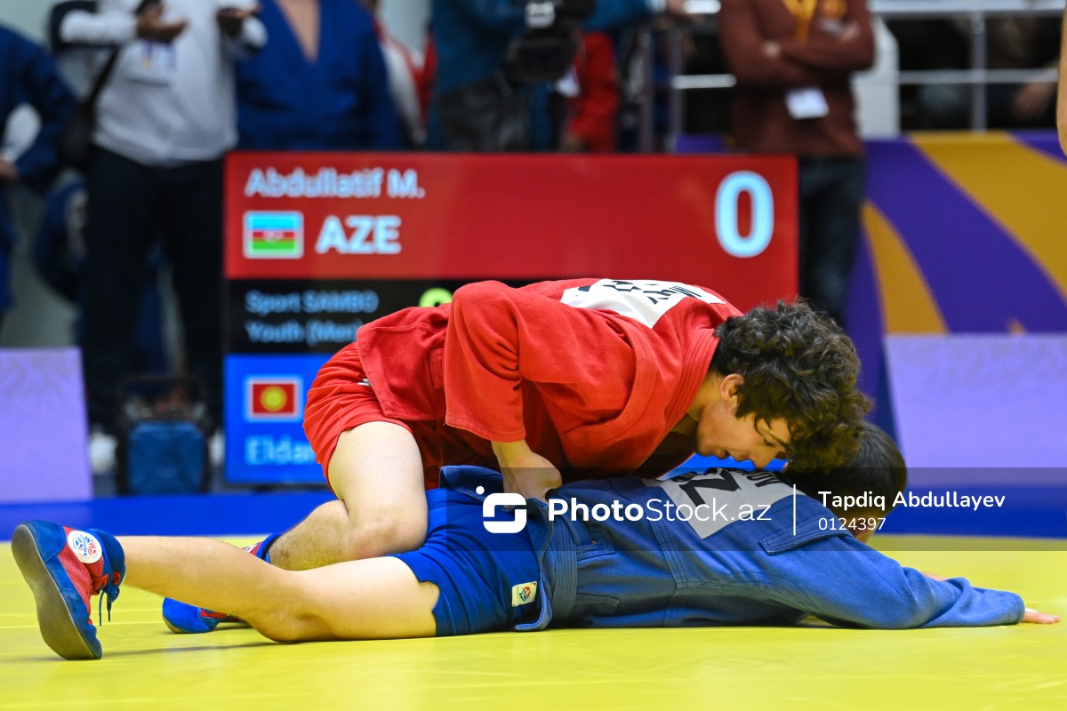 Sentyabrın 29-da Göygöl Olimpiya Kompleksində III MDB Oyunları çərçivəsində sambo üzrə yarışlar keçirilib. Yarımfinal mərhələsində 53 kq çəki dərəcəsində yarışan Azərbaycan samboçusu Əbdüllətif Musayev (sol) qırğızıstanlı idmançı Eldar Askarbekova (sağ) 1:0 hesabı ilə qalib gəlib.