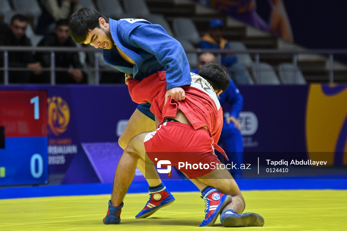Sentyabrın 29-da Göygöl Olimpiya Kompleksində III MDB Oyunları çərçivəsində sambo üzrə yarışlar keçirilib. Yarımfinal mərhələsində 58 kq çəki dərəcəsində yarışan Azərbaycan samboçusu Rüstəm Qasımzadə (sol) qazaxıstanlı rəqibi Sayat Nurzhanı (sağ) 8:2 hesabı ilə məğlub edib.