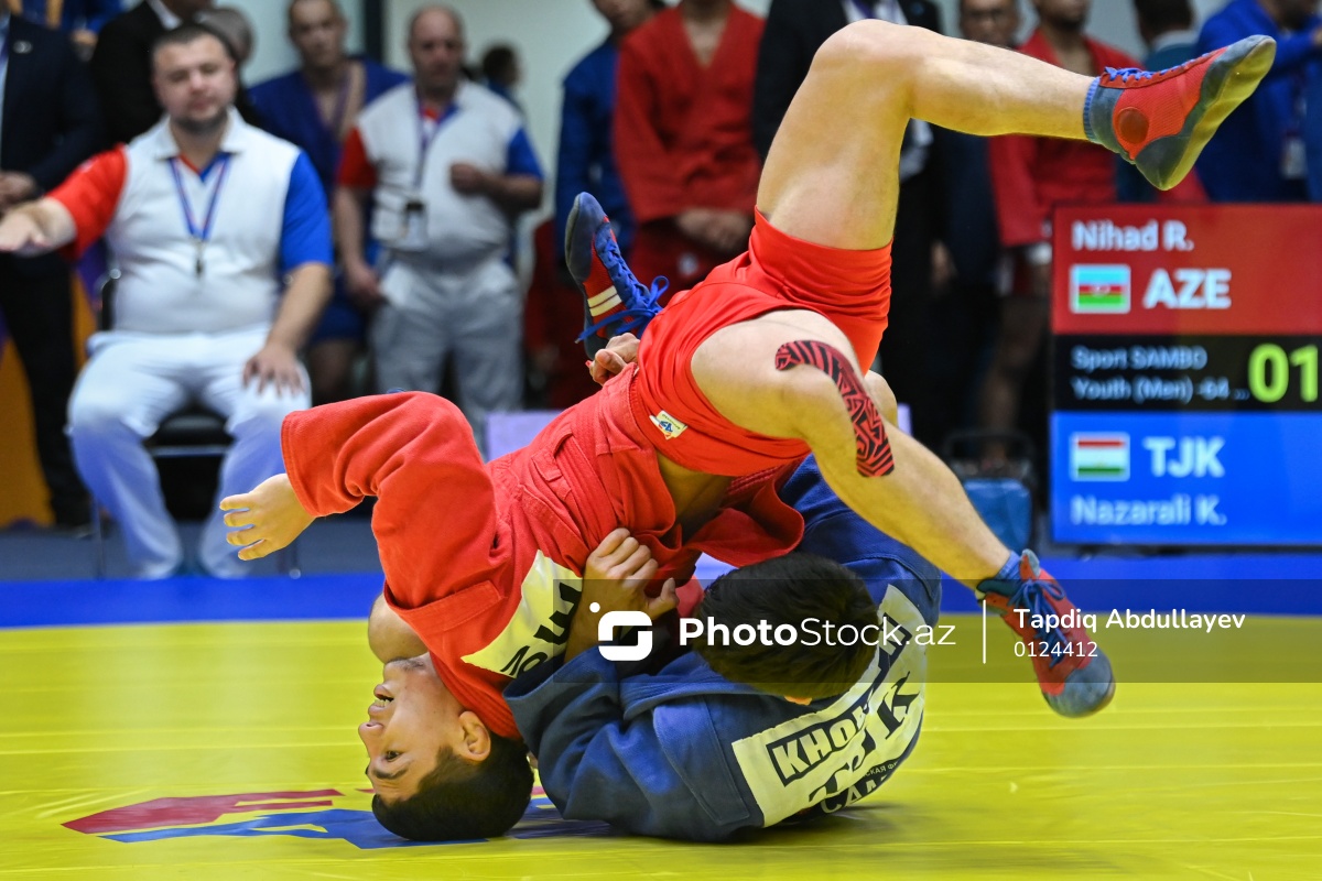 Sentyabrın 29-da Göygöl Olimpiya Kompleksində III MDB Oyunları çərçivəsində sambo üzrə yarışlar keçirilib. Yarımfinal mərhələsində 64 kq çəki dərəcəsində yarışan Azərbaycan samboçusu Nihad Rəhimov (sol) belaruslu idmançı Nazarali Kholova (sağ) 11:0 hesabı ilə qalib gəlib.