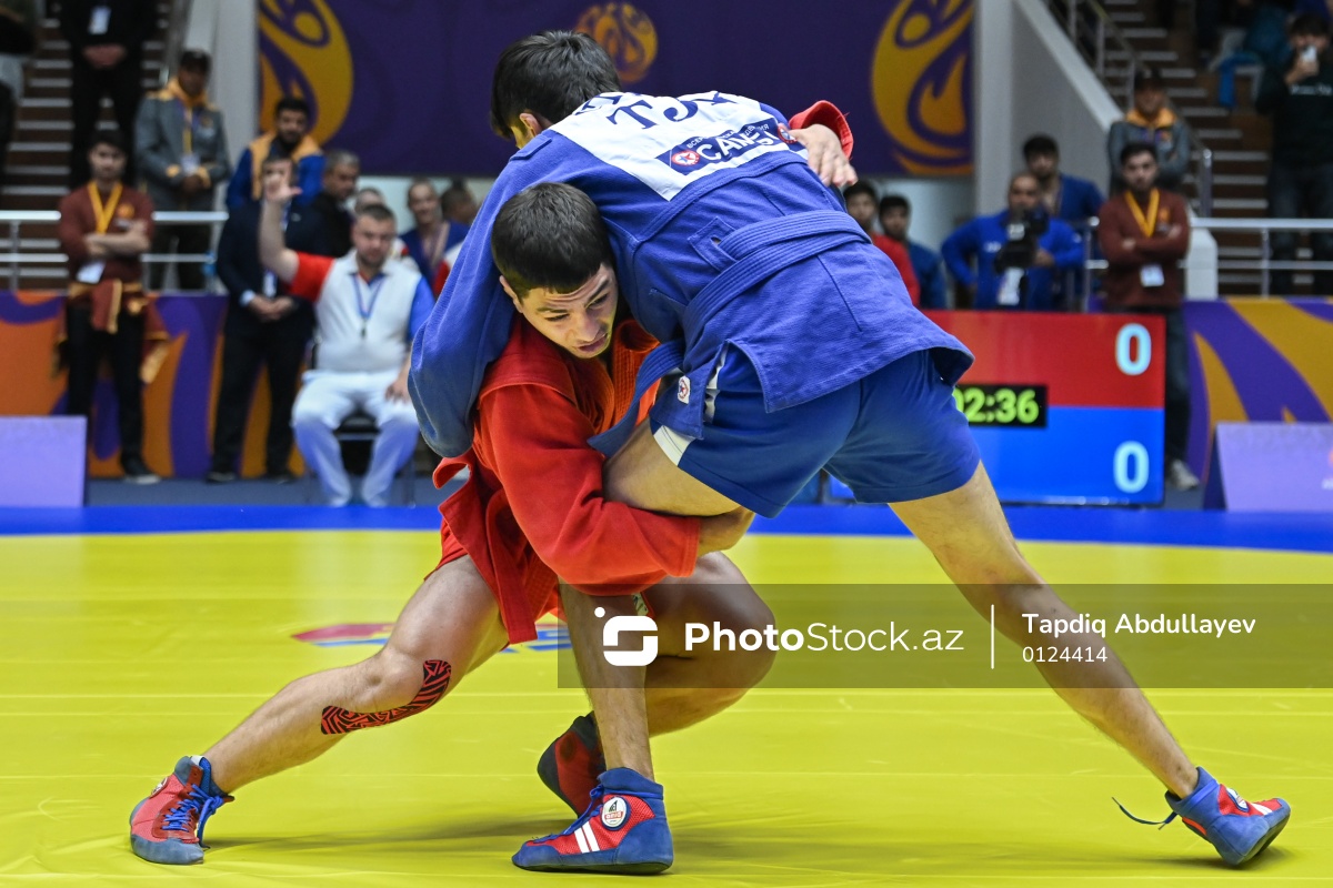 Sentyabrın 29-da Göygöl Olimpiya Kompleksində III MDB Oyunları çərçivəsində sambo üzrə yarışlar keçirilib. Yarımfinal mərhələsində 64 kq çəki dərəcəsində yarışan Azərbaycan samboçusu Nihad Rəhimov (sol) belaruslu idmançı Nazarali Kholova (sağ) 11:0 hesabı ilə qalib gəlib.