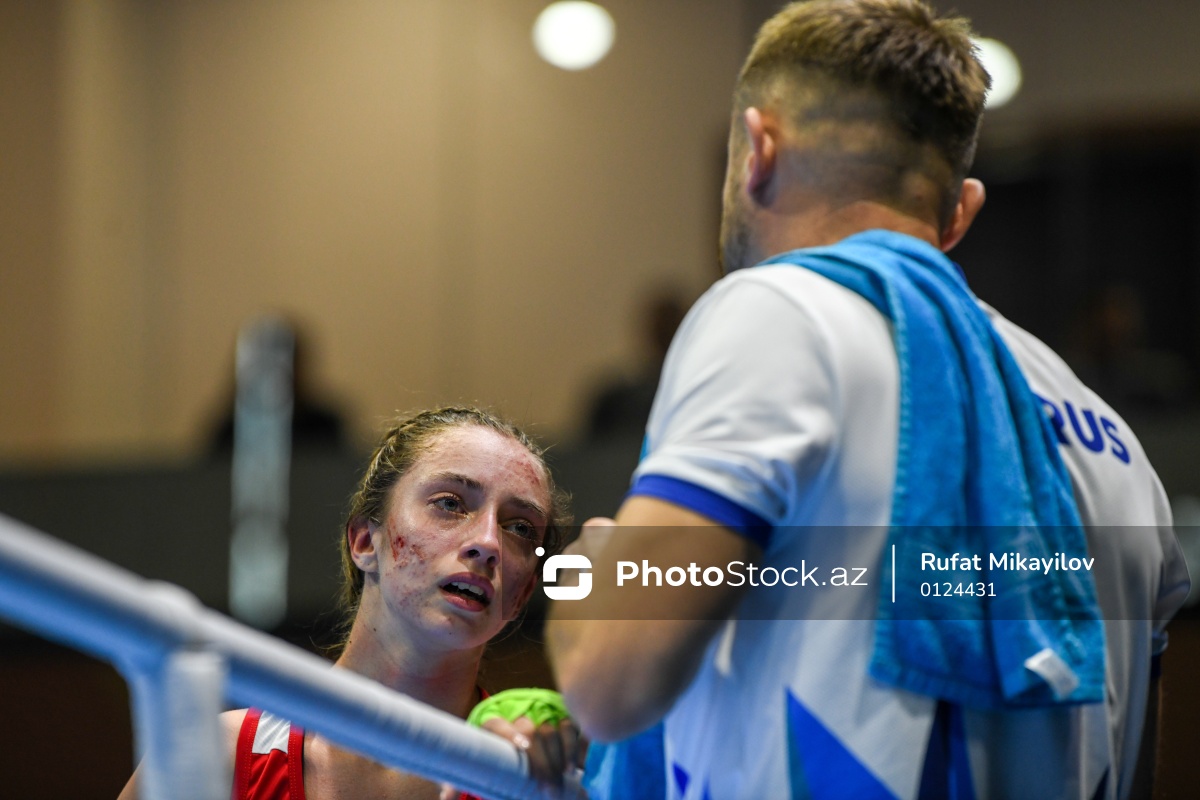 III MDB Oyunlarında 46 kq çəki dərəcəsində mübarizə aparan Belarus boksçusu Aliaksandra Kustsikava.