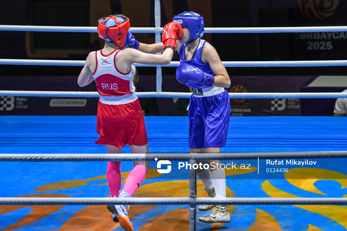 Sentyabrın 29-da III MDB Oyunları çərçivəsində Yevlax Olimpiya İdman Kompleksində boks yarışlarına start verilib. Qadınlar arasında 1/4 final mərhələsində 50 kq çəki dərəcəsində yarışan Rusiya boksçusu Diana Kuznetsova (sol) qazaxıstanlı rəqibi Aruzhan Bakhytbeki (sağ) 5:0 hesabı ilə məğlub edib.