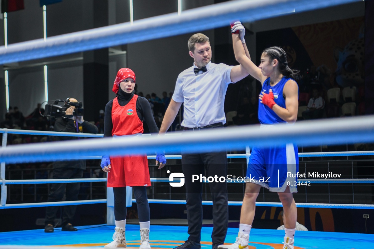 III MDB Oyunlarında 50 kq çəki dərəcəsində mübarizə aparan Azərbaycan boksçusu Sima İsmayılova.