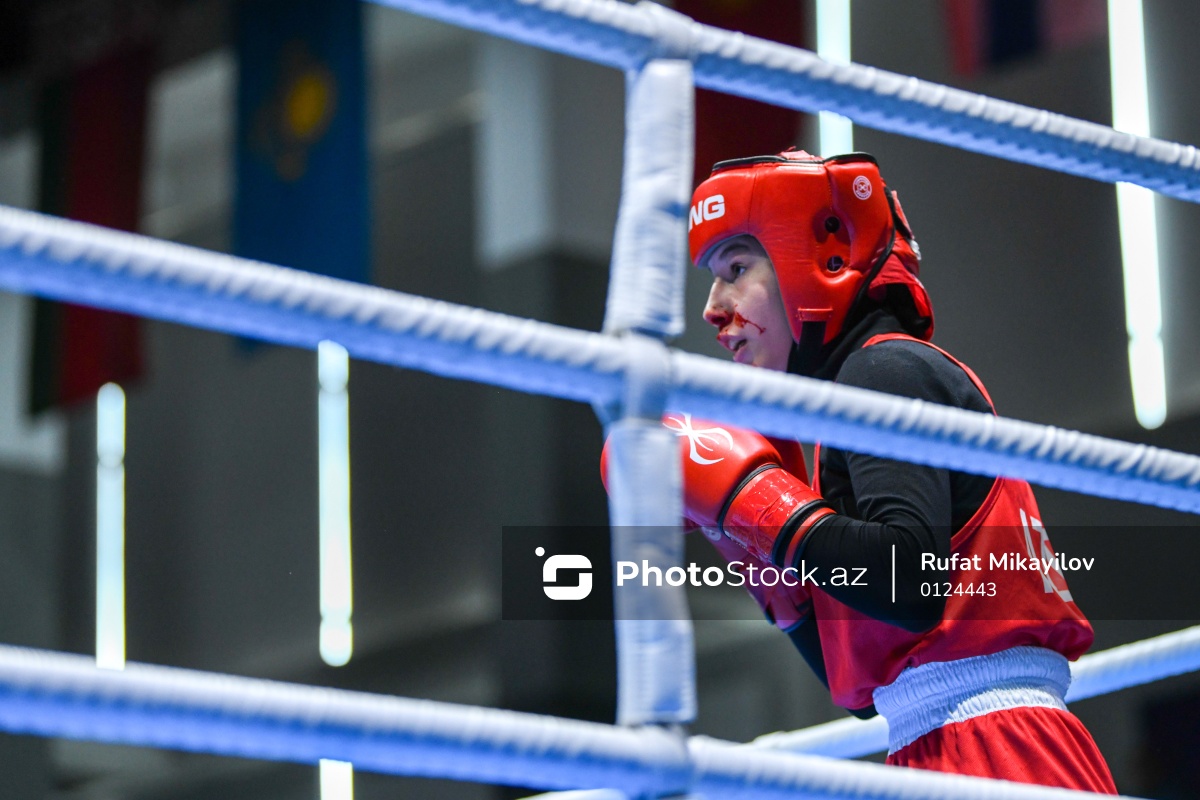 III MDB Oyunlarında 50 kq çəki dərəcəsində mübarizə aparan Azərbaycan boksçusu Sima İsmayılova.
