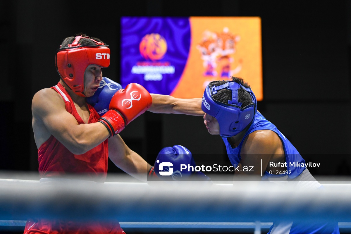 Sentyabrın 29-da III MDB Oyunları çərçivəsində Yevlax Olimpiya İdman Kompleksində boks yarışlarına start verilib. Kişilər arasında 1/4 final mərhələsində 63 kq çəki dərəcəsində yarışan Tacikistanlı boksçu Abdyrahman Babayev (sol) Özbəkistan təmsilçisi Dilshod Akhmadjonova (sağ) 0:5 hesabı ilə məğlub olub.