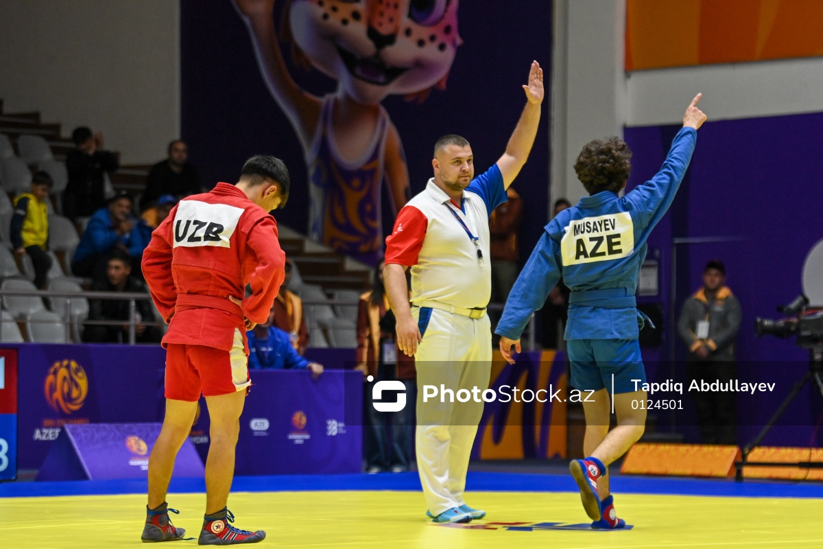 Sentyabrın 29-da Göygöl Olimpiya Kompleksində III MDB Oyunları çərçivəsində sambo üzrə yarışlar keçirilib. 53 kq çəki dərəcəsində özbəkistanlı samboçu Qamzat Maksetbayev (sol) Azərbaycan idmançısı Əbdüllətif Musayevə (sağ) finalda 1:3 hesabı ilə məğlub olub. Azərbaycanlı samboçu qızıl medala layiq görülüb.