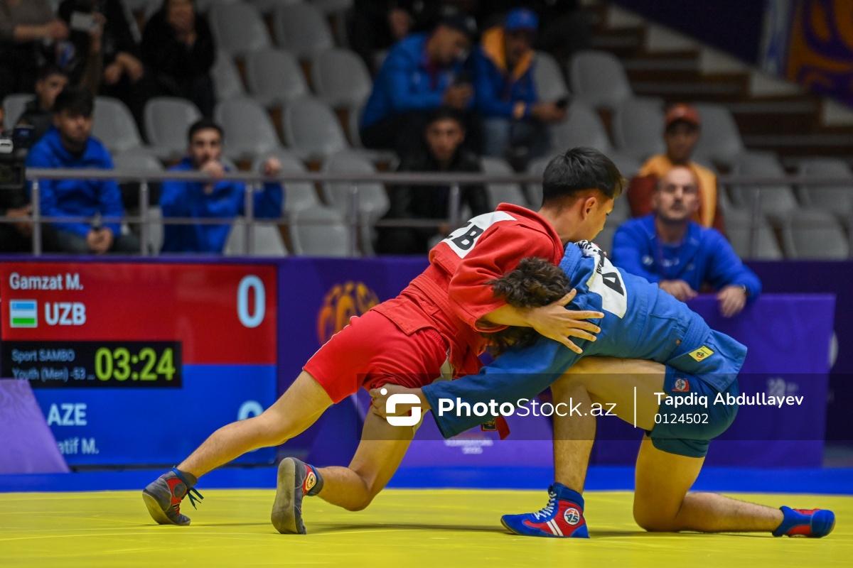 Sentyabrın 29-da Göygöl Olimpiya Kompleksində III MDB Oyunları çərçivəsində sambo üzrə yarışlar keçirilib. 53 kq çəki dərəcəsində özbəkistanlı samboçu Qamzat Maksetbayev (sol) Azərbaycan idmançısı Əbdüllətif Musayevə (sağ) finalda 1:3 hesabı ilə məğlub olub. Azərbaycanlı samboçu qızıl medala layiq görülüb.