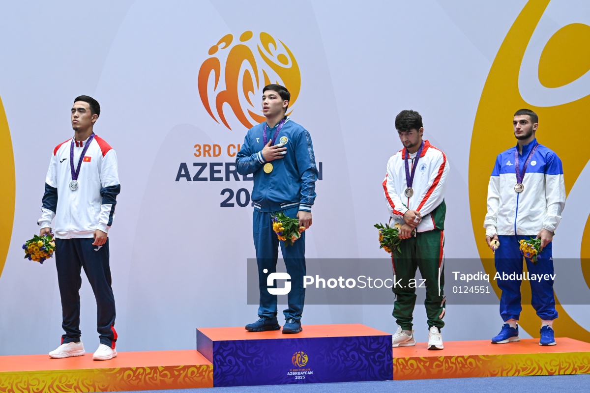 III MDB Oyunları çərçivəsində sambo üzrə 71 kq çəki dərəcəsində yarışan (soldan-sağa) gümüş medal mükafatçısı qırğızıstanlı samboçu Ilias Erkinbekovich Abzhaliev, qızıl medal qazanan Özbəkistan samboçusu Muhammadyusuf Yusufjonov, bürünc medal mükafatçıları tacikistanlı samboçu Yosin Hukumatov və Azərbaycan samboçusu Mikayıl Əmirov.
