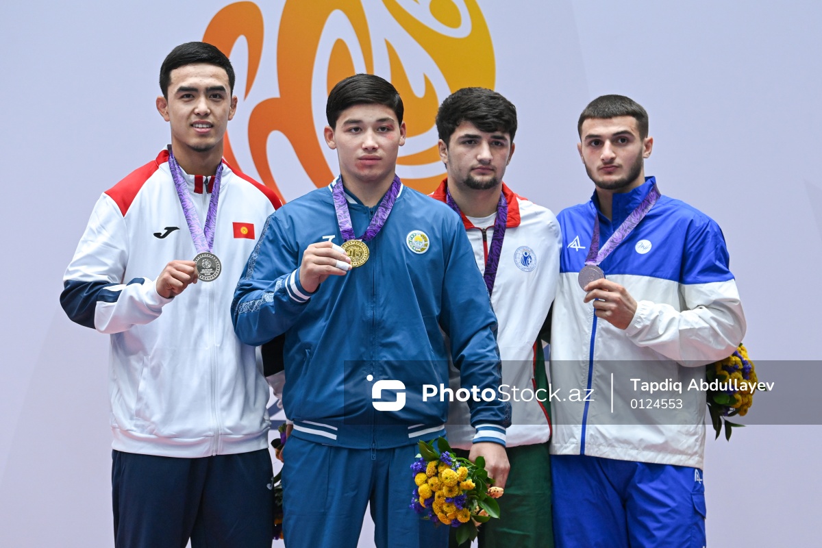 III MDB Oyunları çərçivəsində sambo üzrə 71 kq çəki dərəcəsində yarışan (soldan-sağa) gümüş medal mükafatçısı qırğızıstanlı samboçu Ilias Erkinbekovich Abzhaliev, qızıl medal qazanan Özbəkistan samboçusu Muhammadyusuf Yusufjonov, bürünc medal mükafatçıları tacikistanlı samboçu Yosin Hukumatov və Azərbaycan samboçusu Mikayıl Əmirov.