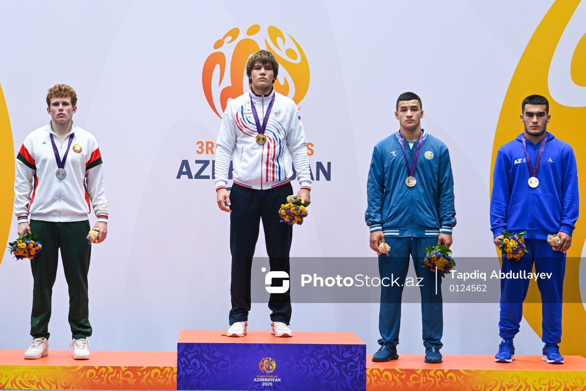 III MDB Oyunları çərçivəsində sambo üzrə 88 kq çəki dərəcəsində yarışan (soldan-sağa) gümüş medal mükafatçısı belaruslu samboçu Pavel Mishchanka, qızıl medal qazanan Rusiya samboçusu Sergei Maletin, bürünc medal mükafatçıları özbəkistanlı samboçu Shohjahon Golibov və Azərbaycan samboçusu Xəzər Əmrahlı.